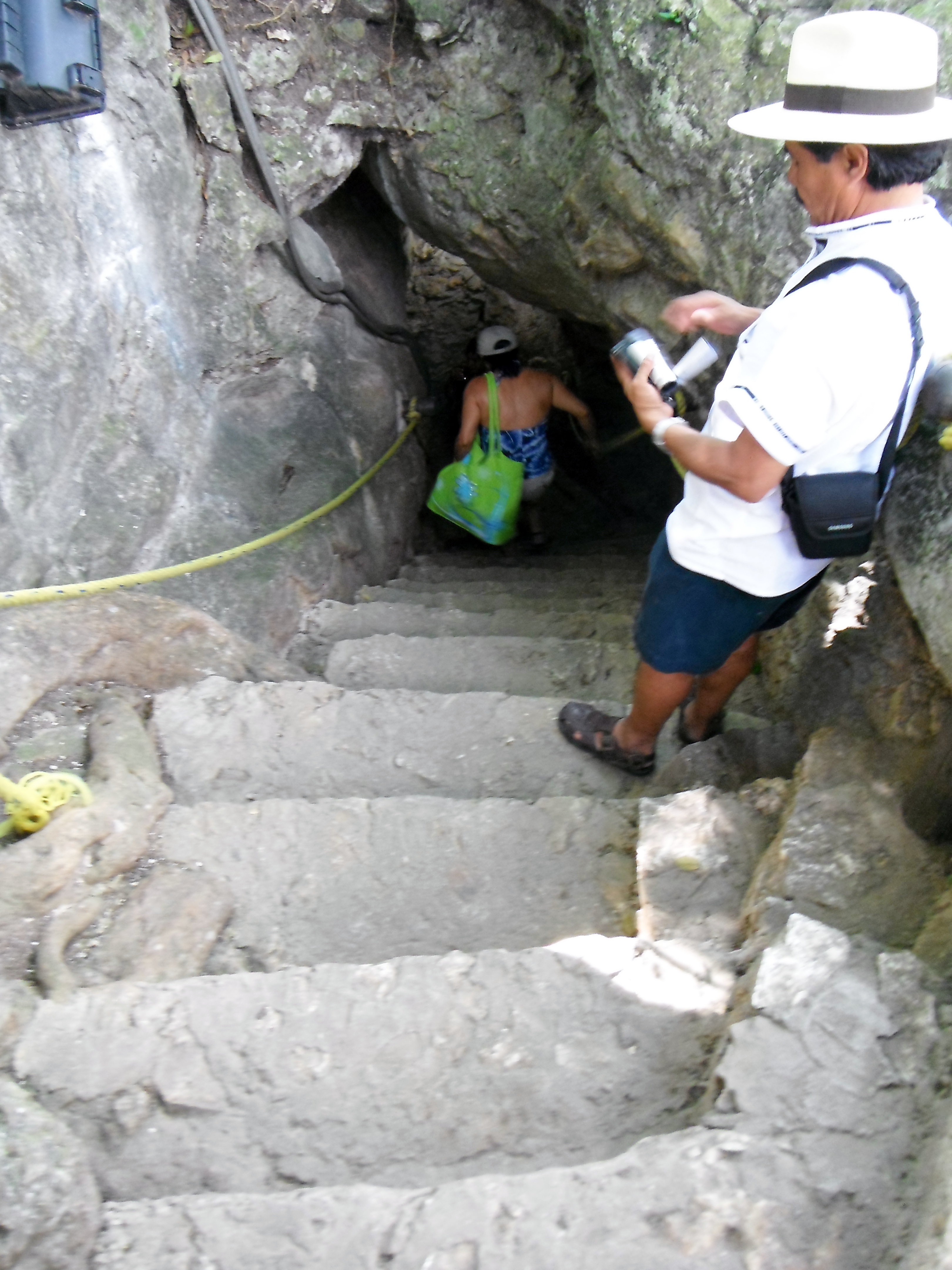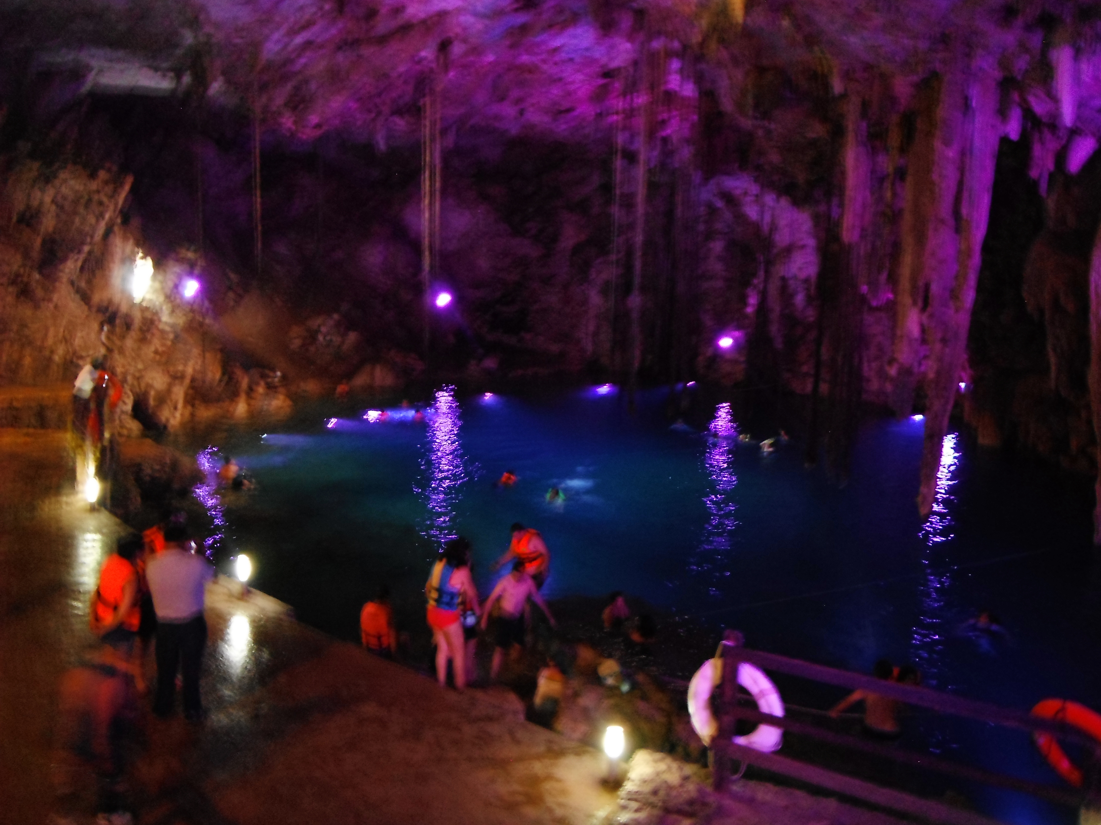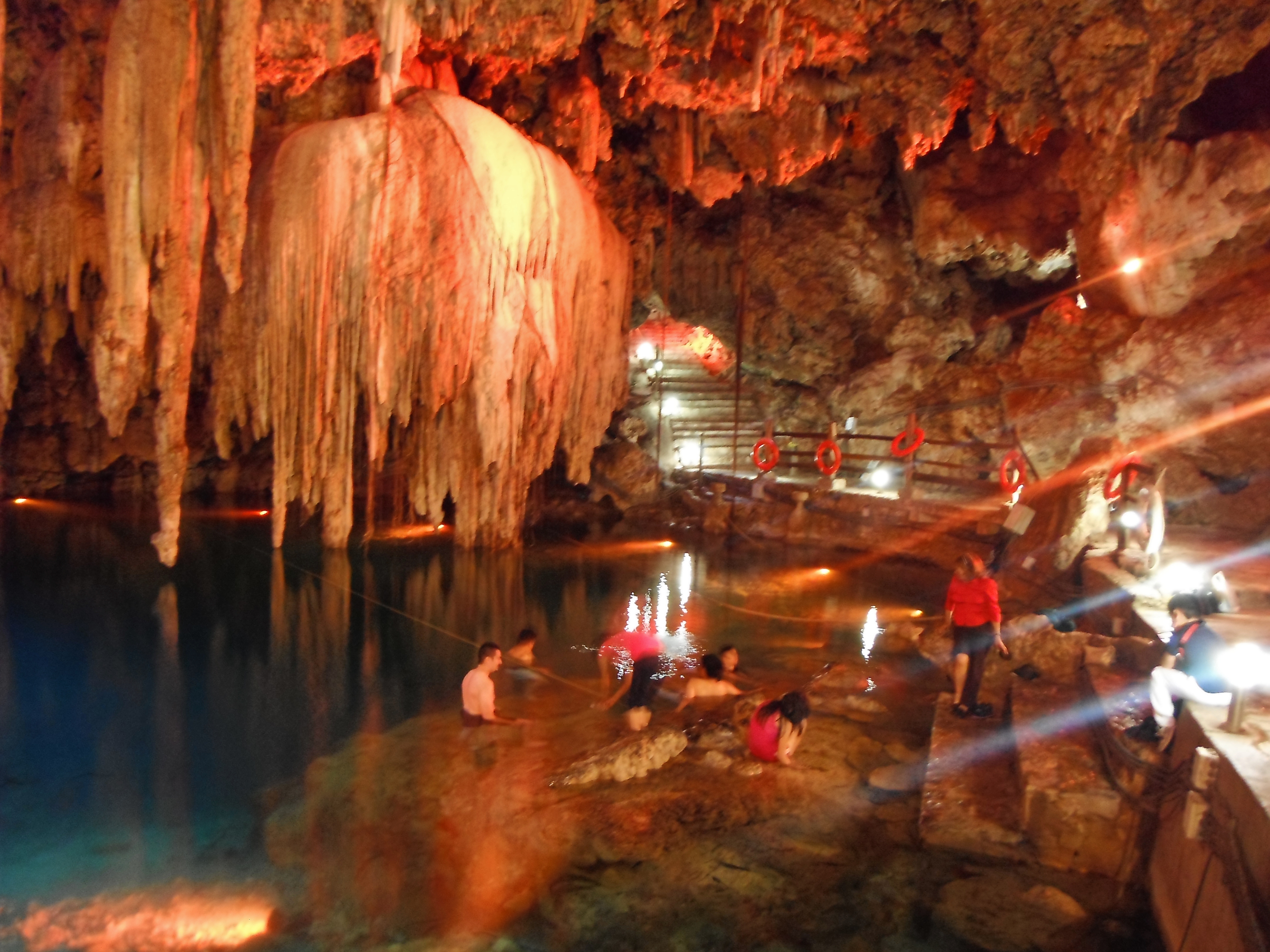 And really, that’s what it was. The air grew thicker as we made our way down the steep steps into the cave. Only a small opening in the ceiling allowed the sun into the cavern. The rest was lit with an array of artificial lighting that somewhat dramatically changed from color to color every ten minutes or so. The result was pretty but unnecessary. The place didn’t need any extra colors to illuminate its beauty.