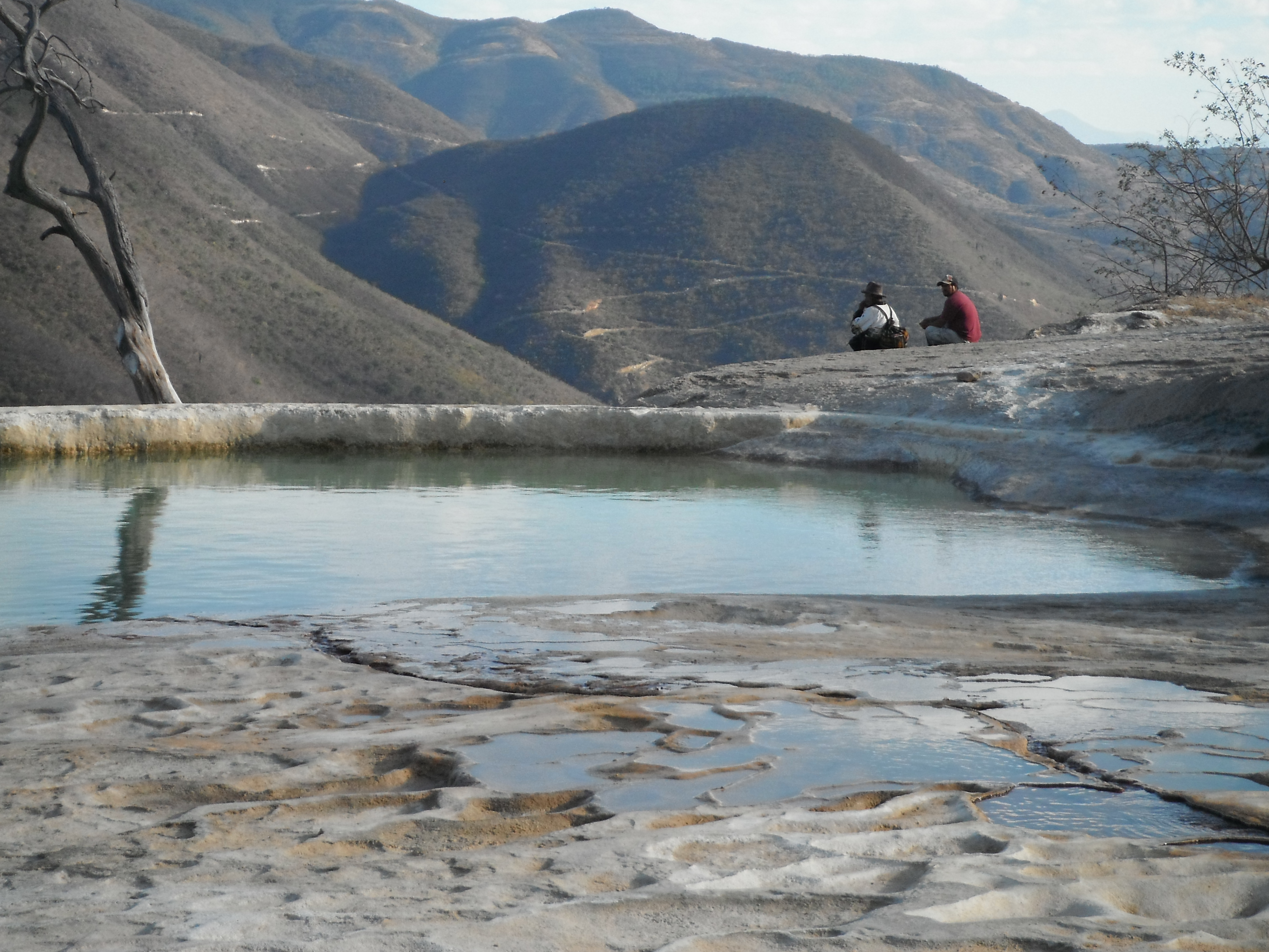 Our last stop of the day was, literally, off the beaten path. Our van headed through a small village and up a steep dirt road to arrive at Hierve El Agua or ‘The Water Boils.’ This is a mineral spring that bubbles out from the ground and into pools on a spectacular cliff side. Over millions of years the minerals in the water spilling over the cliffs have created what our guide referred to as ‘petrified waterfalls’ – white stalactite-like formations falling over the edge. It is quite the site to see.