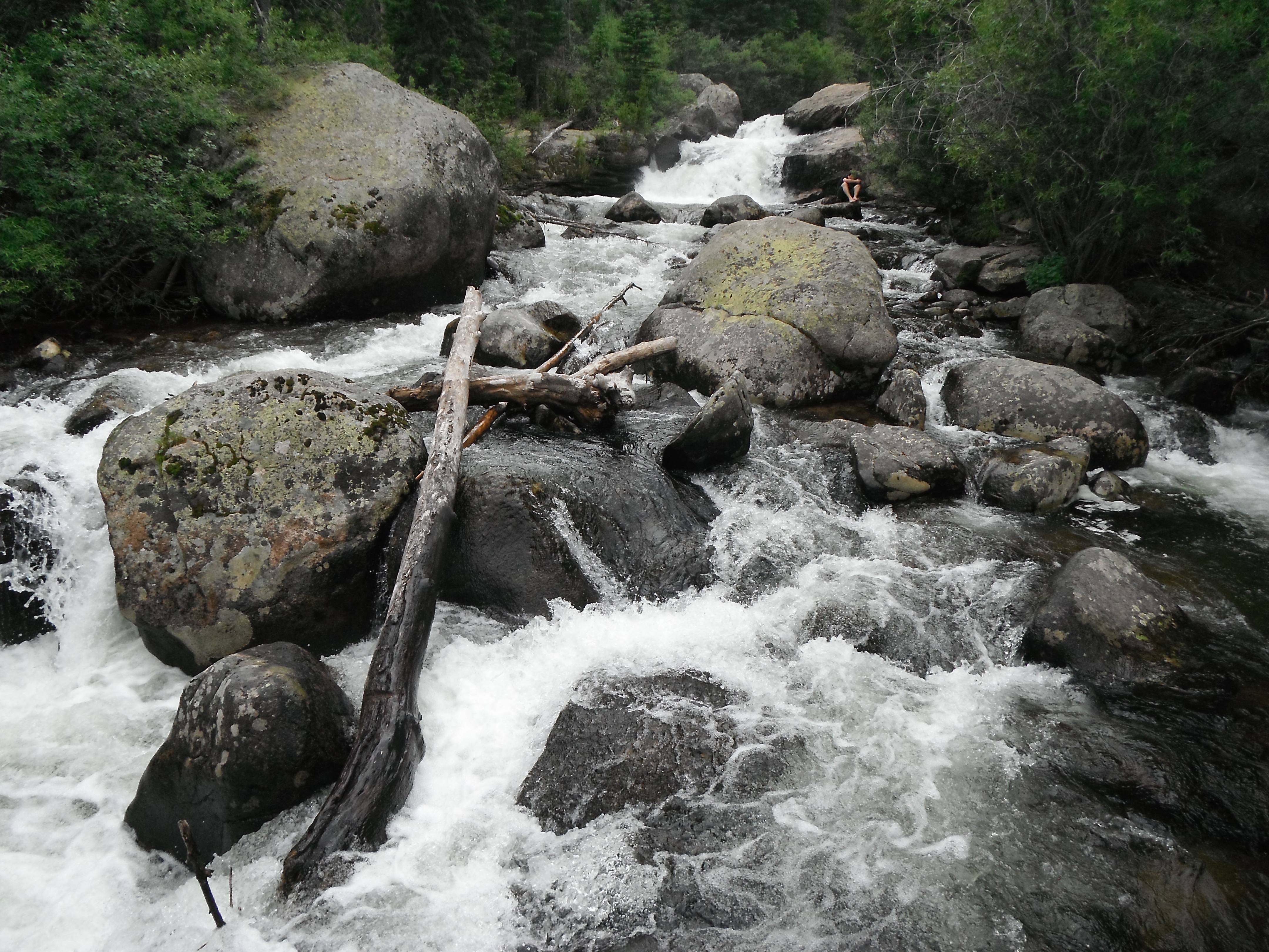 I was so delighted by all the water and greenery as we made the gradual climb that I barely noticed my exertion. It has been a dry summer at Mesa Verde, and while our flowers had died weeks ago, the alpine meadows at Rocky Mountain were blooming. I hadn’t realized how much I missed the green cover of large trees until I found myself shaded among them. We call our Pinyon and Juniper at Mesa Verde ‘the pygmy forest,’ because all of our vegetation is stunted by the combination of high altitude and lack of water. The high desert certainly has its beauty, but I found myself joyous to be immersed in this new, fertile, colorful place. What thrilled me the most was the water – it was everywhere. Not a moment went by on the trail where I could not hear the rush of a stream or river somewhere in the woods. Sometimes the water was in clear view, sometimes it was miles away, but I can’t tell you the comfort that sound of life gave me as we made our way higher and deeper into the mountains. Best of all were the waterfalls that sometimes appeared out of nowhere. Water in such abundance is not something I’ve seen since I’ve left the east coast. To me, it all seemed like magic.