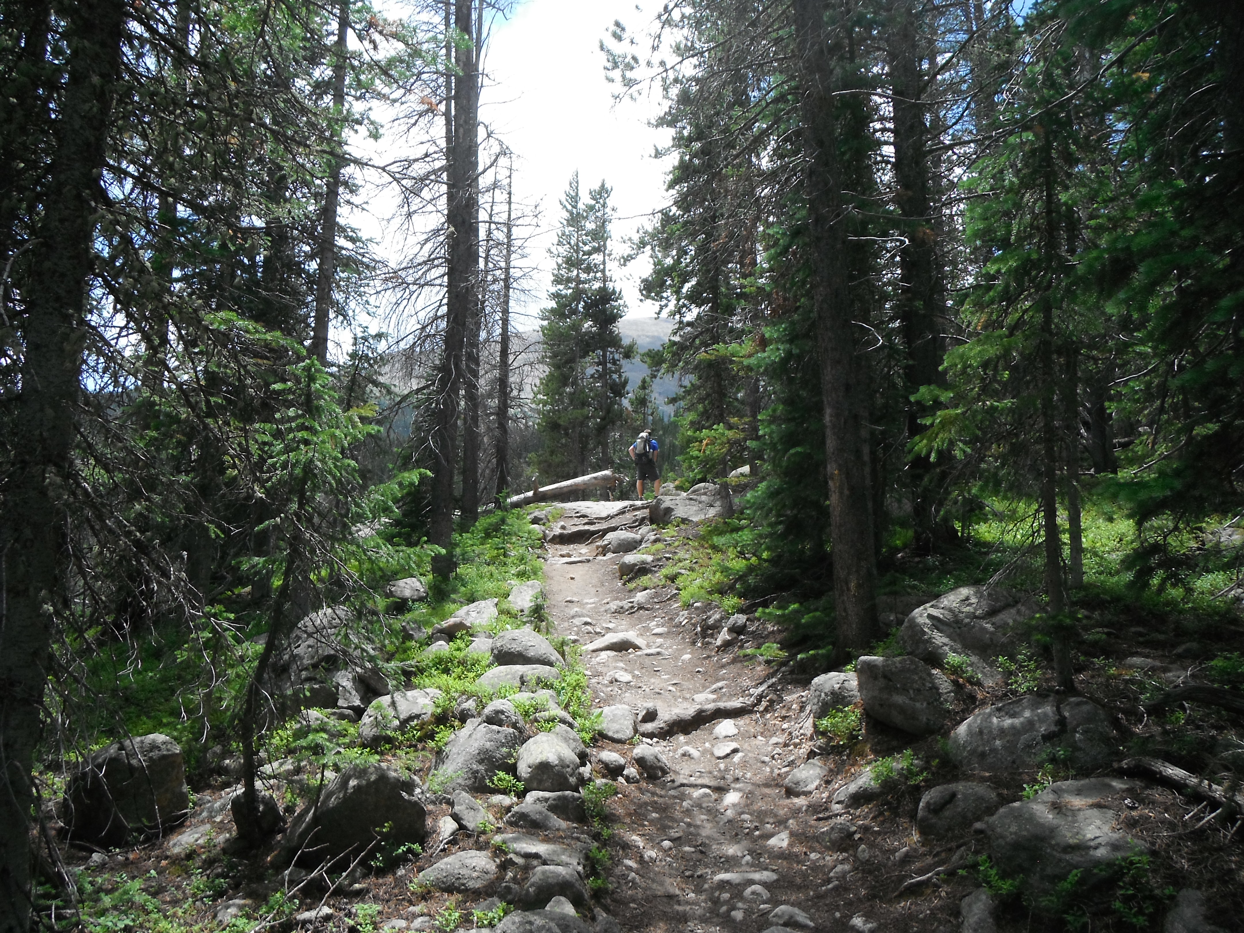 Thanks to some afternoon monsoons, my flight was delayed out of Durango several hours, and I didn’t get into Denver until the early hours of the morning. Luckily, the hike to the cabin was only seven miles, which allowed us the luxury of sleeping in and getting a late start. After eating breakfast on the porch of Austin’s park service residence – an old but charming wood house situated next to a small meadow and mountain stream – we packed up and headed for the trailhead.