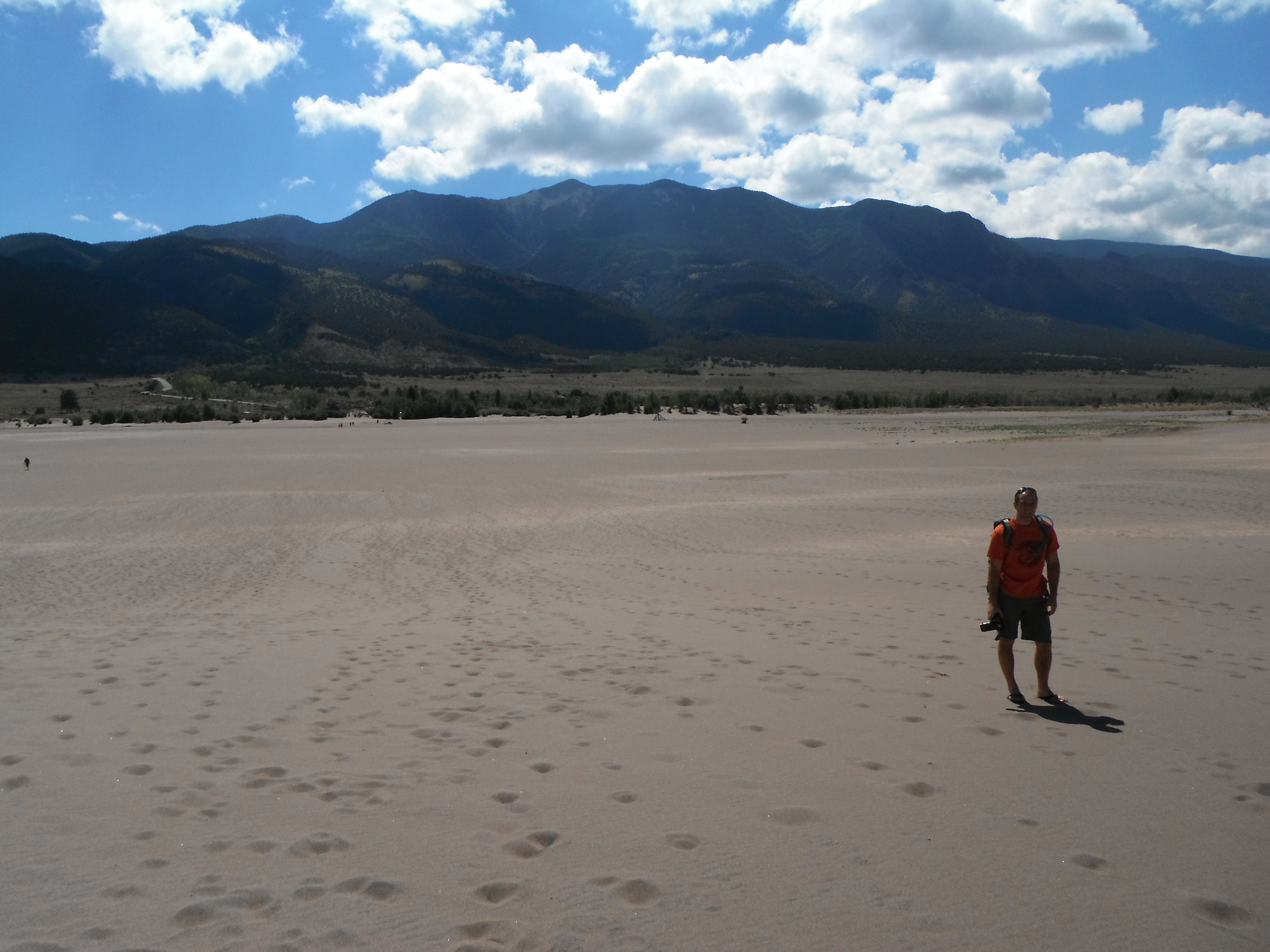 Although the sand dunes cover over 30 square miles, we anticipated the trudge to be difficult enough to aspire only to get to the top of the dunes closest to the parking lot – it was our day off, after all. Initially, the plan was to summit High Dune, the highest point accessible without hauling deep into the field. But it was a busy August day, and a steady stream of visitors were making their way to that very spot – including a hardy group of Mennonite women,  bonnets and all, their bearded men choosing instead to wait in the parking lot (this greatly amused me). In the name of solitude, Austin and I set our sights on a slightly smaller, but much less crowded dune, and made our way towards the sand.