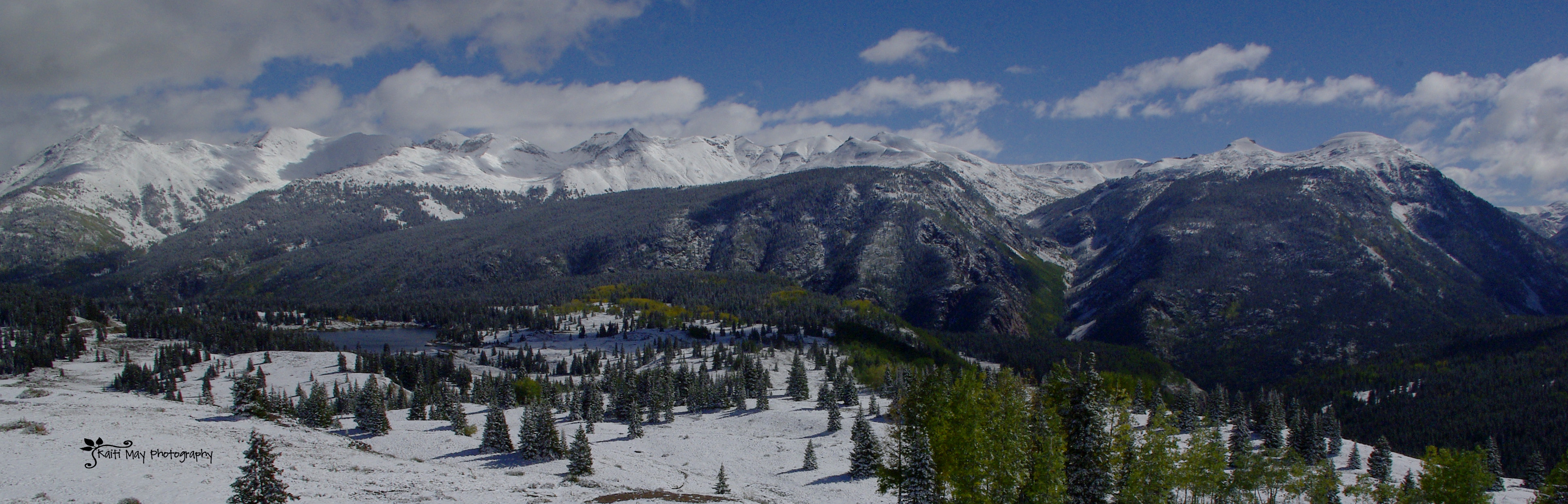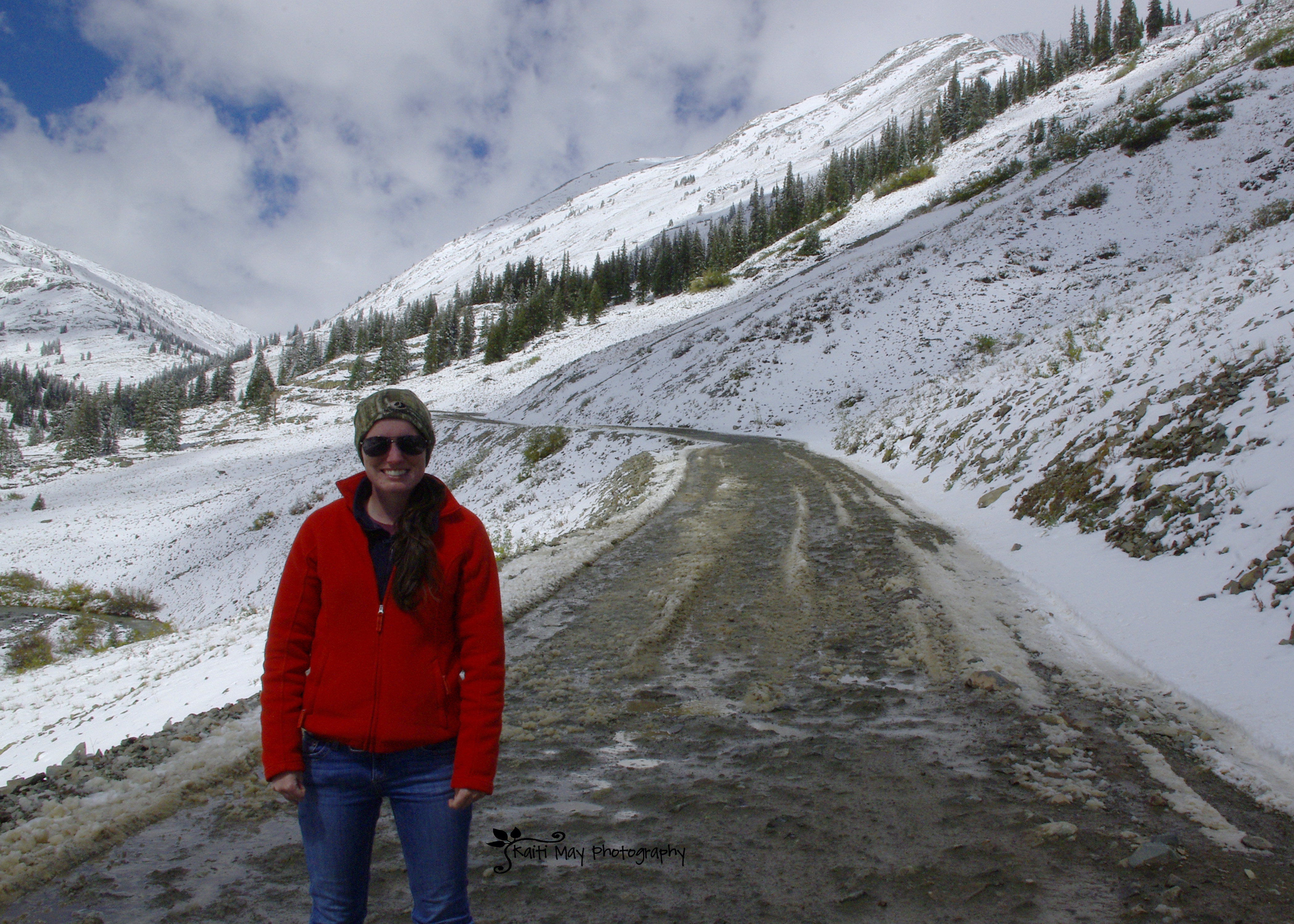 Back into the car we went, and we continued deeper into the frosty mountains – stopping often along the way in order to better admire the frigid scene and breathe the crisp air for ourselves. At Molas Pass we were treated to one of the more spectacular views of the trip, as the San Juans opened out and up around us. I found myself giggling somewhat manically at the beauty of it all, while Kaitlyn climbed around with her camera in order to capture these scenes for later.