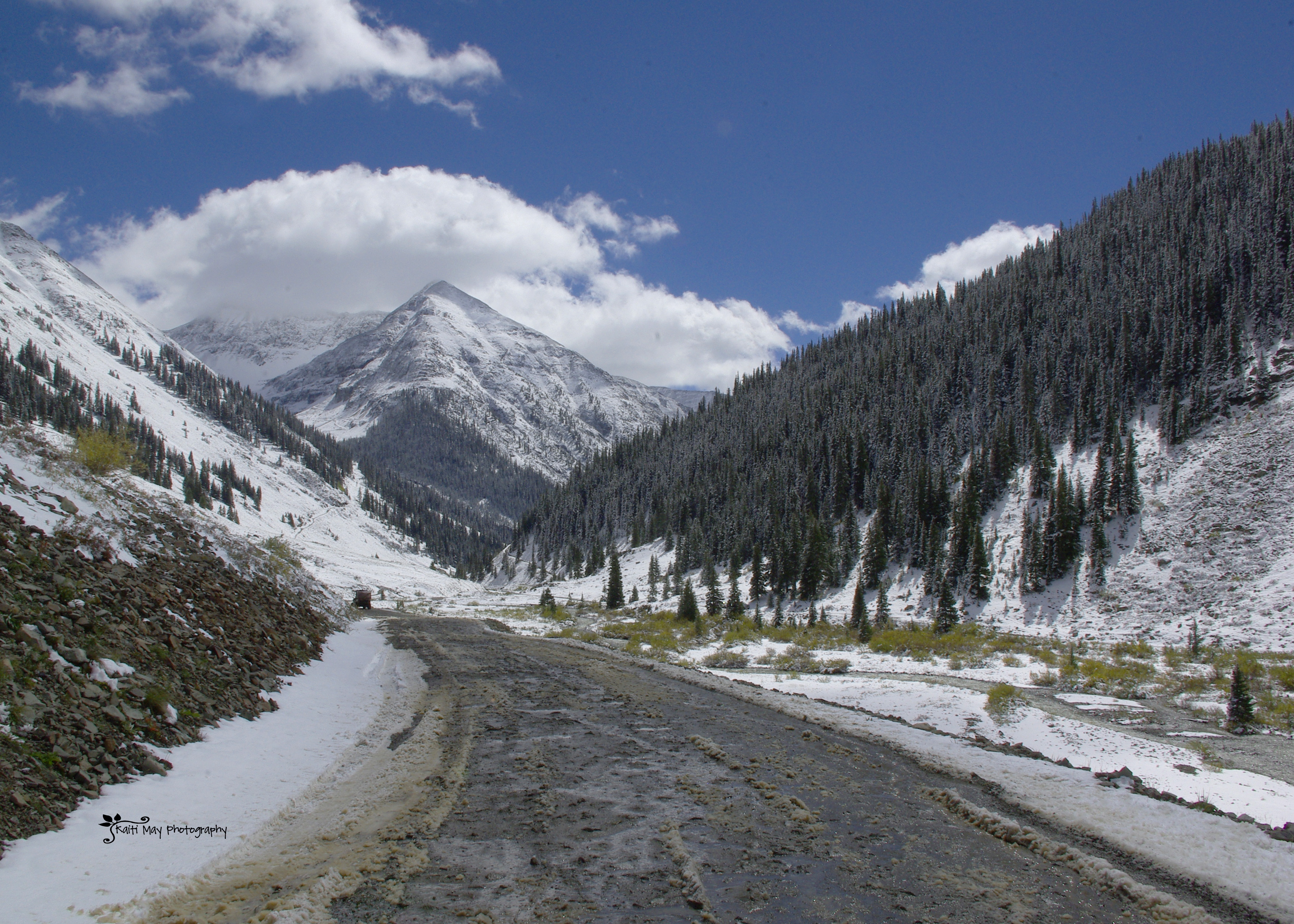 Eventually we reached a point where the snow on the road had turned to slush, but had not melted in the way we would have liked. Kaitlyn, my fearless driver, made the call to turn around. The ghost town of Animas Forks would have to wait for another day.