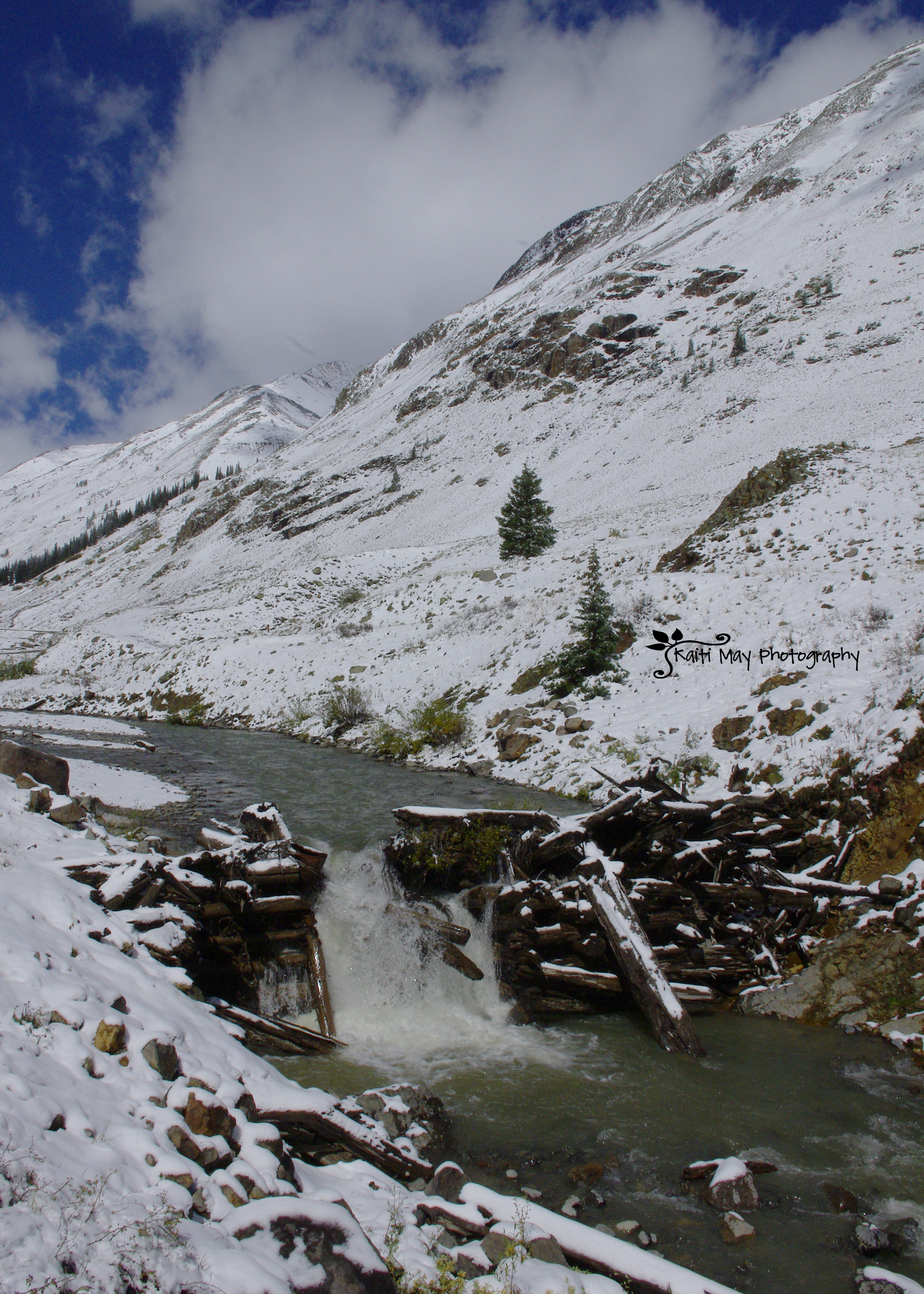We continued up the road, enjoying the sites. Some of our favorites included an old bridge that now hung lopsided and unusable across the presently fast-flowing Animas, and an old wooden damn the river had broken long ago. It was amazing to me just how many man-made structures remained from the mining boom days of Silverton. This road was difficult in the comfort of our heated, high-clearance vehicle – I could only imagine the challenges those industrious miners must have faced 100 years ago.