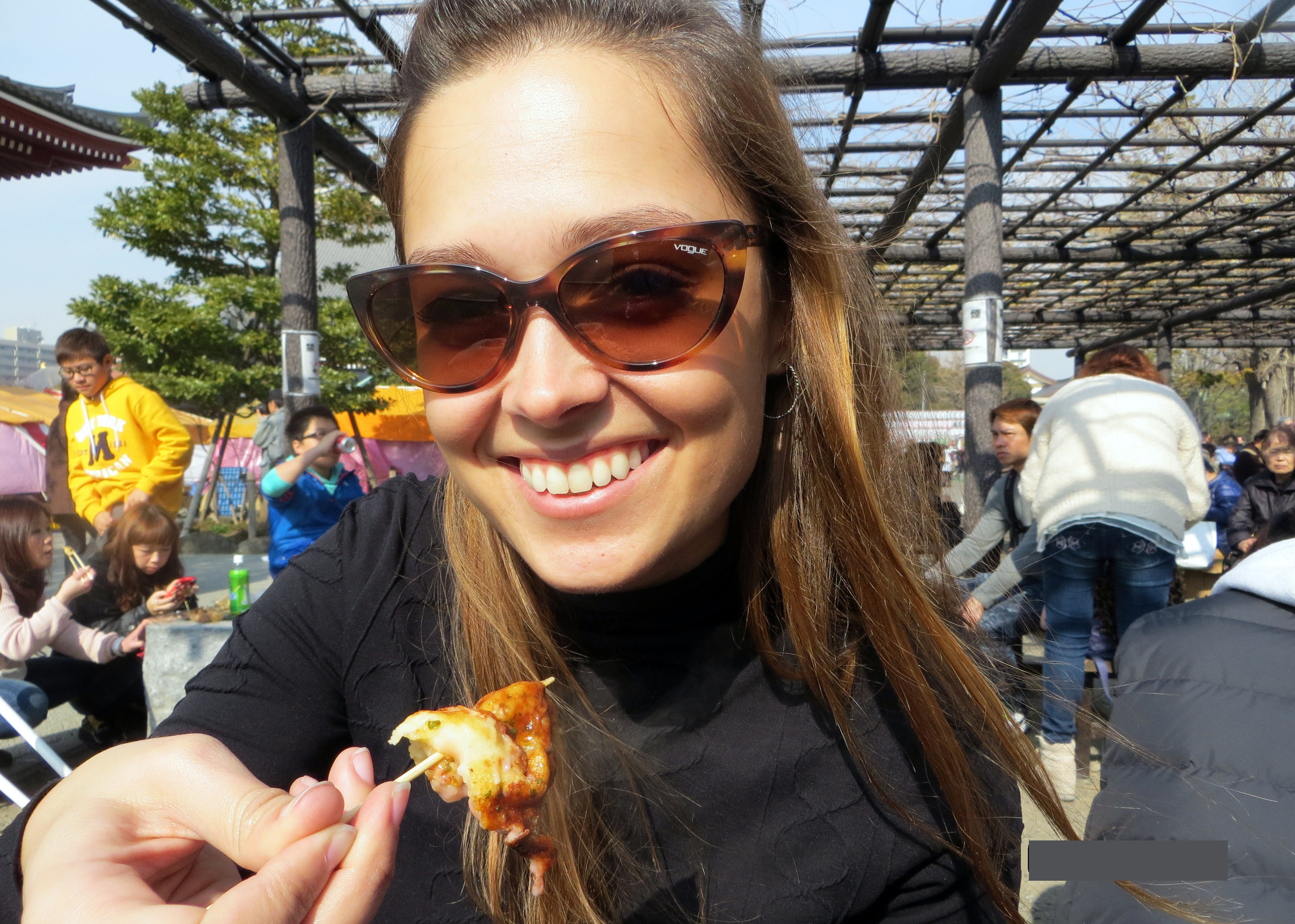 And leading up to the temple you’ll find what turned out to be my favorite market in Japan – Nakamise-dori. This long street featured all sorts of fun goodies – from souvenirs to handmade crafts, to foods of all types. It was here that mom and I faced one of our biggest culinary challenges of the trip – a gooey, slimy, salty ball of octopus and batter.