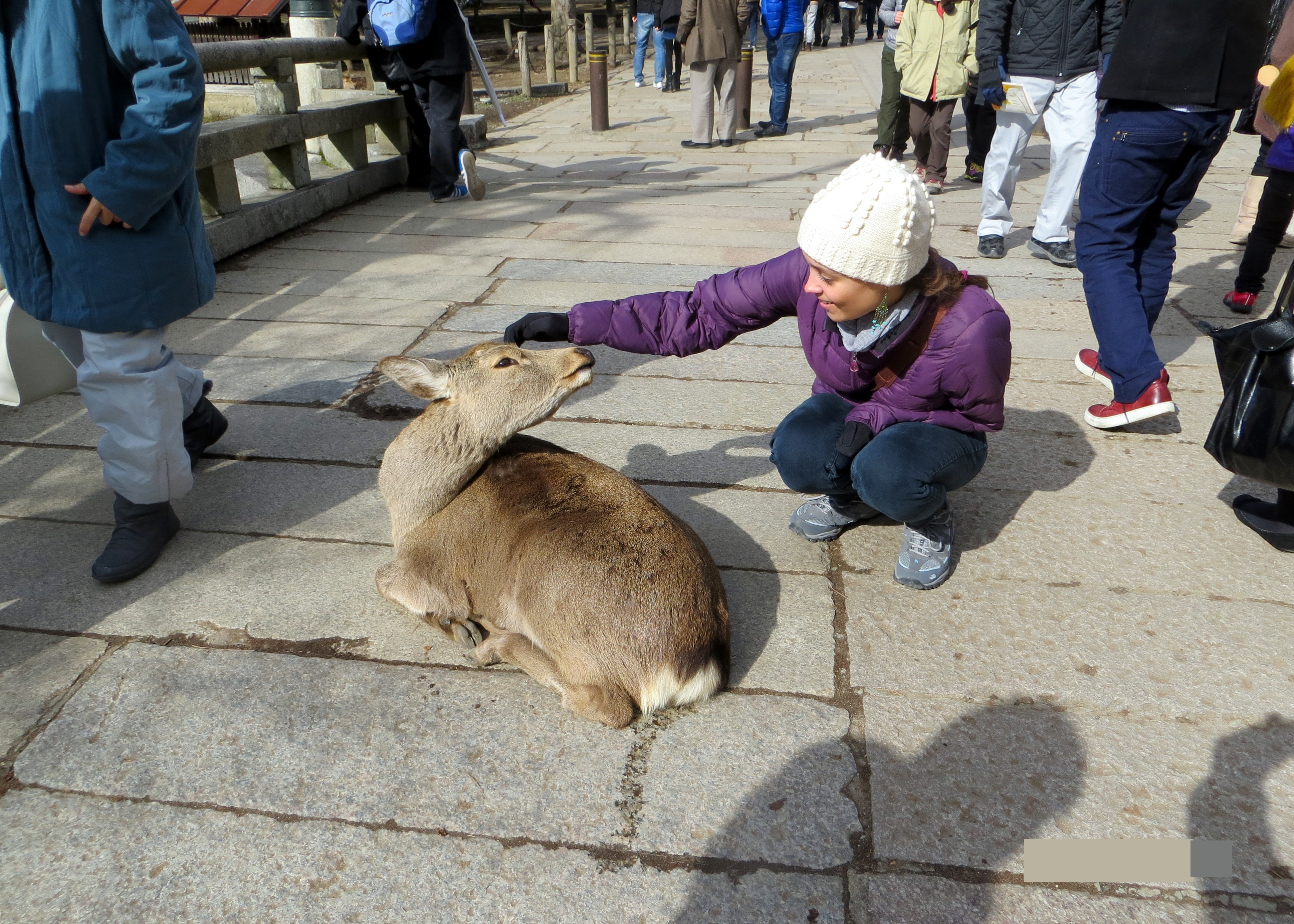 Scenes such as this continued to unfold around us as we made our way to the temple. Children squealed in delight as the deer approached to say hello. Tourists posed for photographs. Without the crackers, they were significantly less terrifying – even sweet.