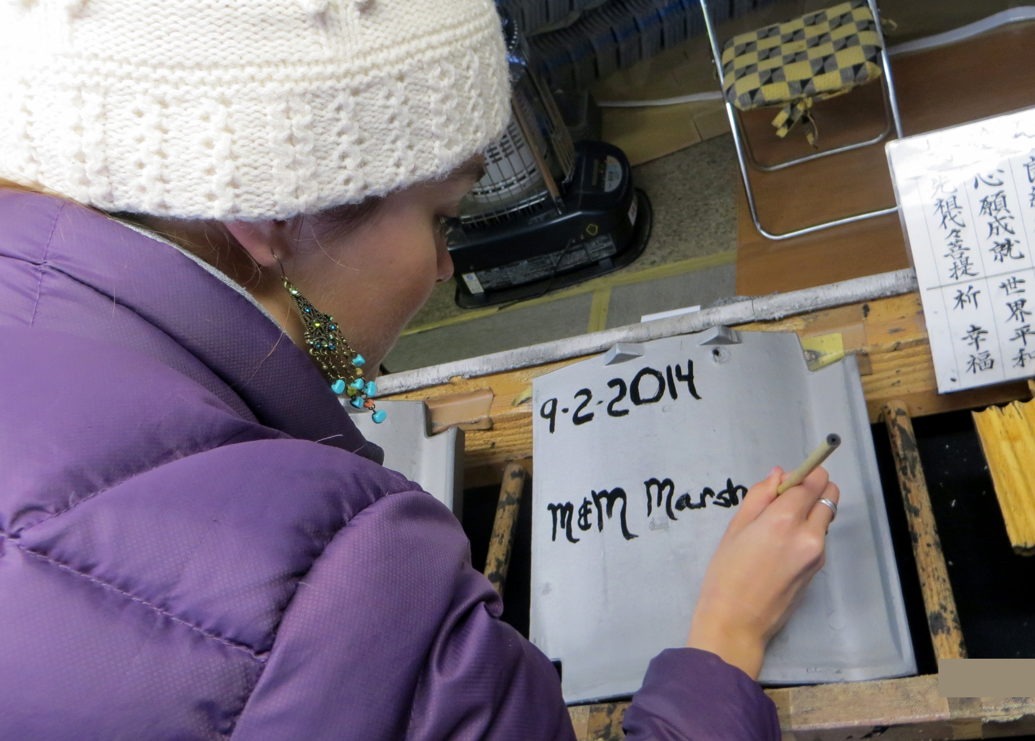 In truth, we were happy to contribute to the restoration of what was to us easily the most magnificent temple we visited in Japan. It turns out our scratchy English characters weren’t nearly as beautiful as whatever poetic prose the Japanese tourists on either side of us painted, but it’s neat to think that our tile might shelter these incredible sculptures one day just the same.