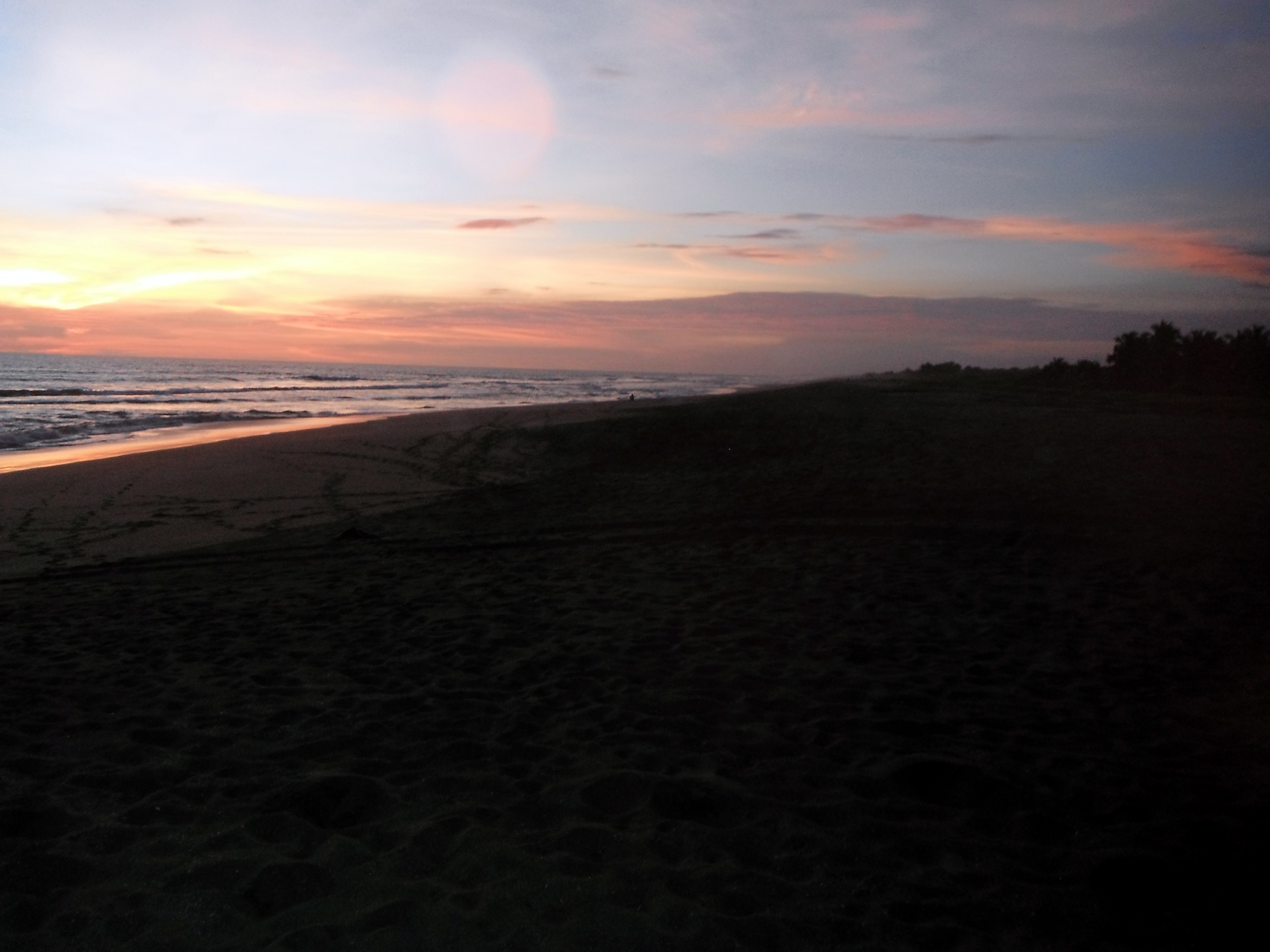 Our bellies full, we headed into the dark and a fairly pleasant drizzle. We giggled nervously as our driver navigated the river and shore by flashlight, and only minutes later we pulled safely to land. Next came a long walk along a beach we could barely see, but the white foam of the waves to my left was still visible in the darkness, and I was excited to be reunited with the Pacific Ocean for the first time since Mexico.