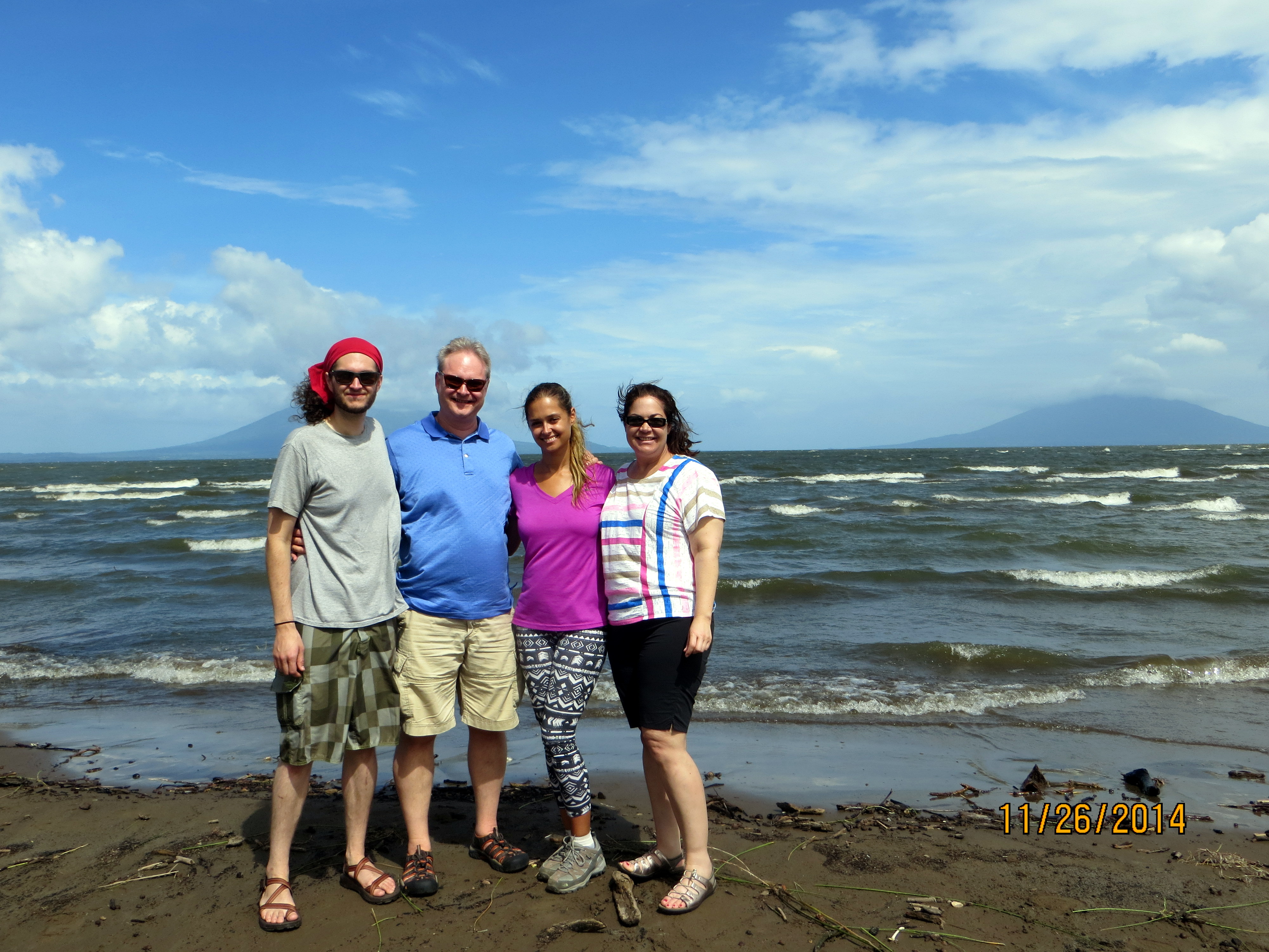 I had seen Ometepe once before – from the shores of Lake Nicaragua. Our driver had pulled over on our way to Morgan’s Rock so that we could take in the sibling volcanoes and stretch our legs before continuing on our way (hence the family photo above).