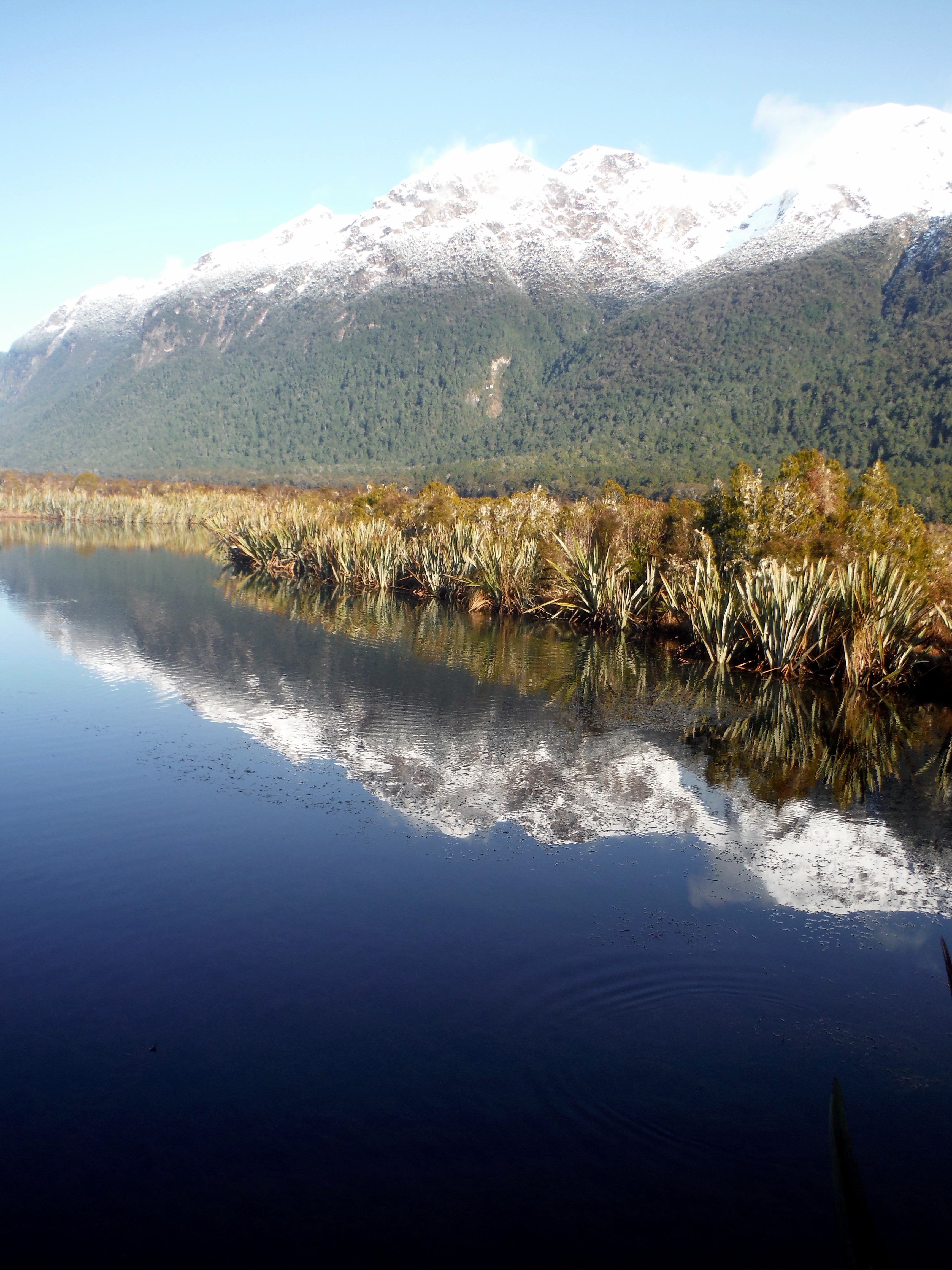Had the road not been closed, Tom and I wouldn’t of had those hours to explore Fjordland National Park. Had the road been open, our boat would undoubtedly be full and we would have shared the sound with many more boats than we did. Had we been able to board our original midday cruise we would not get to see the reflection of that periwinkle sky on that calm jeweled water.
