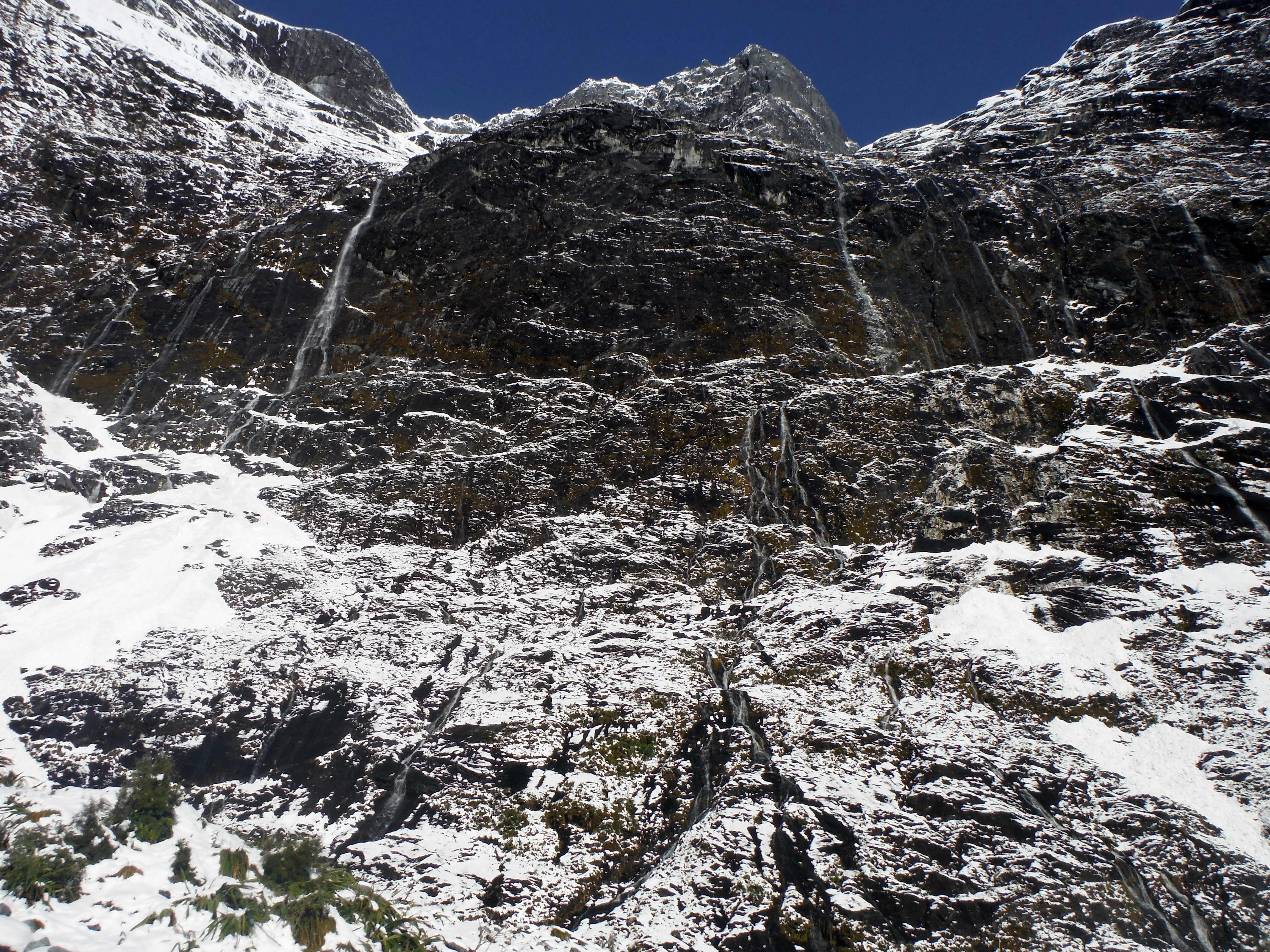 And then we were off, through the mountain tunnel that spit us out into a sparkling, snow-covered valley. At first I thought my eyes were playing tricks on me as they adjusted from the darkness of the tunnel – it seemed as though the sheer rock walls were moving. But it wasn’t a trick. Soon I saw them clearly – hundreds of waterfalls were cascading down the cliffs – the last of the precipitation that had kept these roads closed for the past four days.