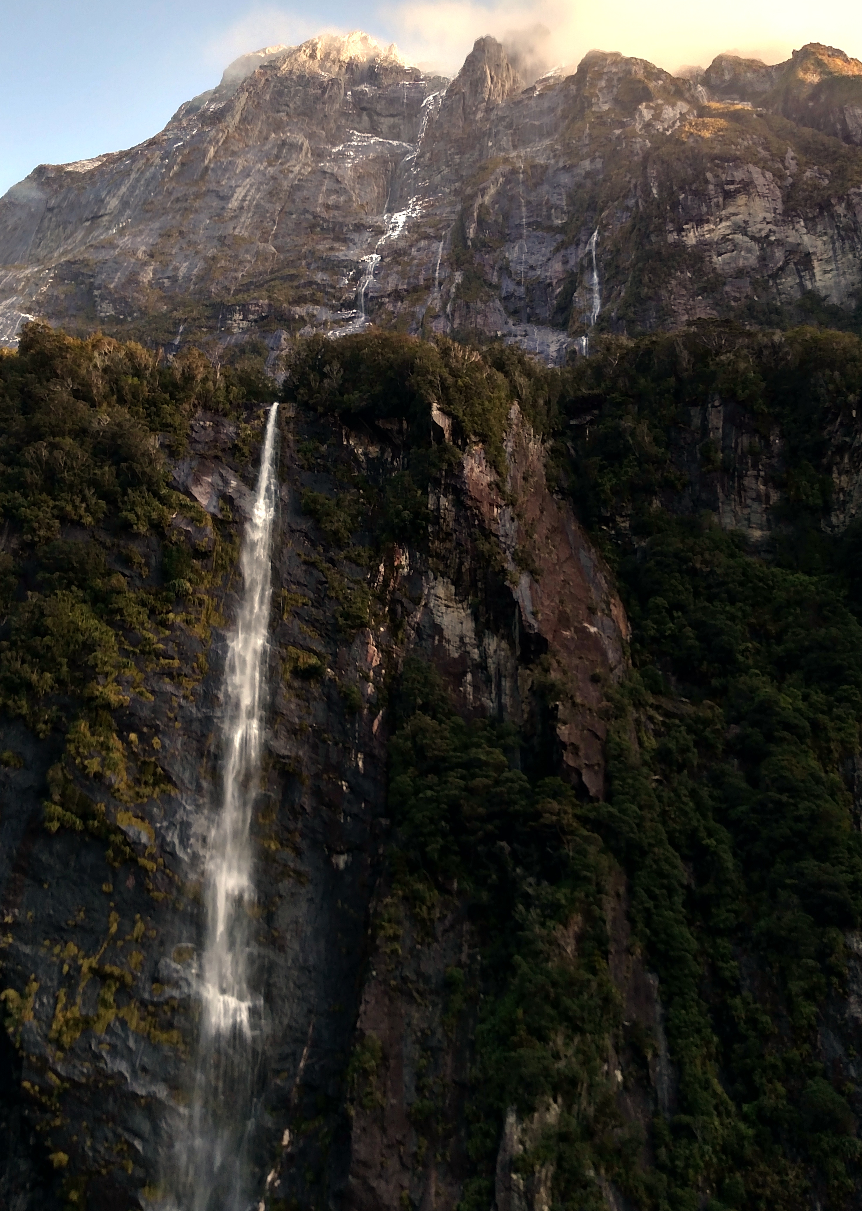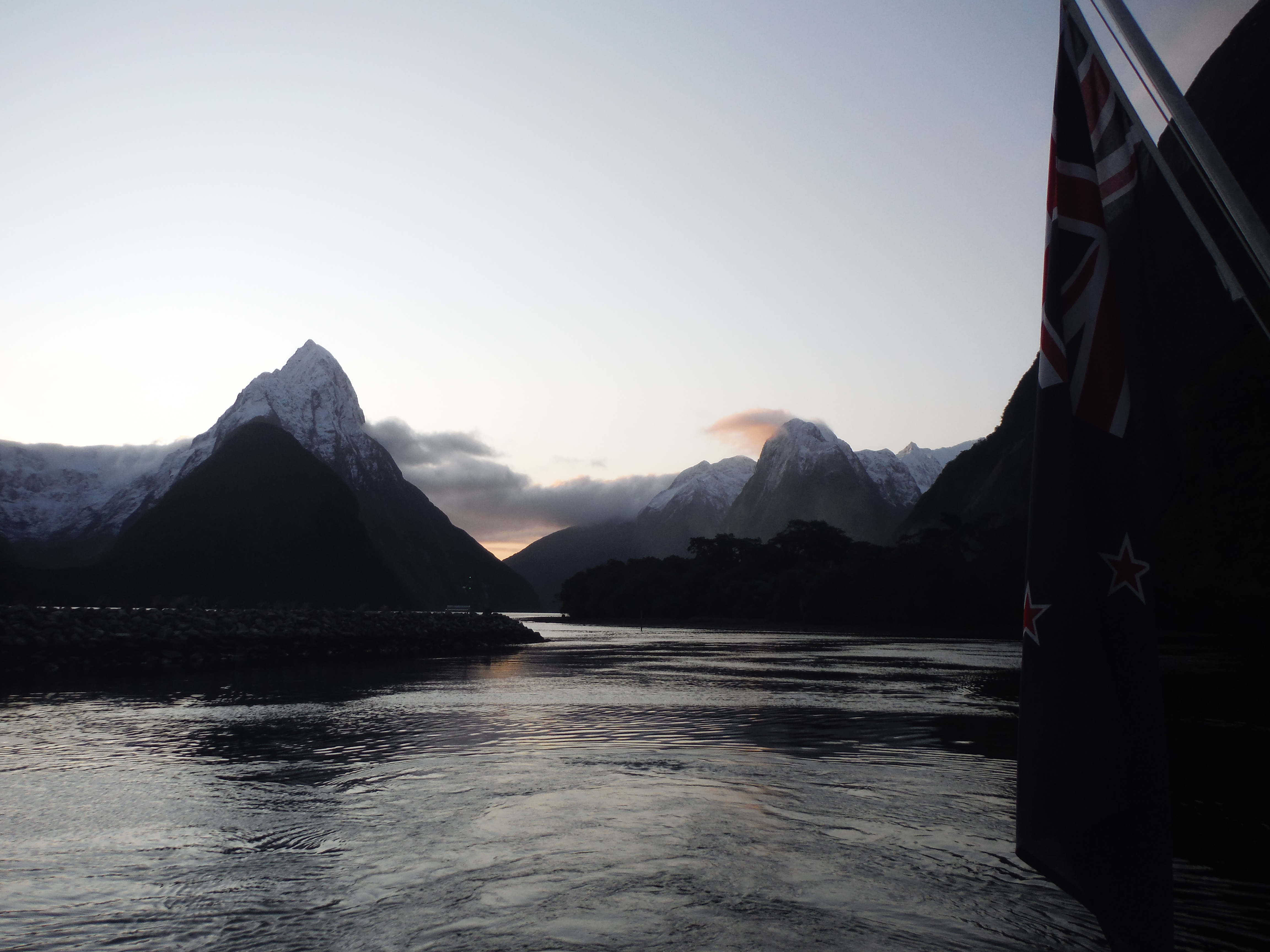 It was cold. I am a person who is not naturally warm, and I typically have a very low tolerance for cold. But I was so stunned by Milford Sound that I did not go inside the heated boat cabin for the entire tour. It was truly one of the most spectacular sights I have ever seen, and I could not believe our luck as we pulled into the mouth of the Tasman Sea just as the sun began to set. I thought of all the cars and buses we saw turn around at the gate earlier that afternoon, and how all of those people were probably wishing now that the road had not been closed. But even though I knew we’d be driving home in the dark, I was so thankful for all that time spent waiting.