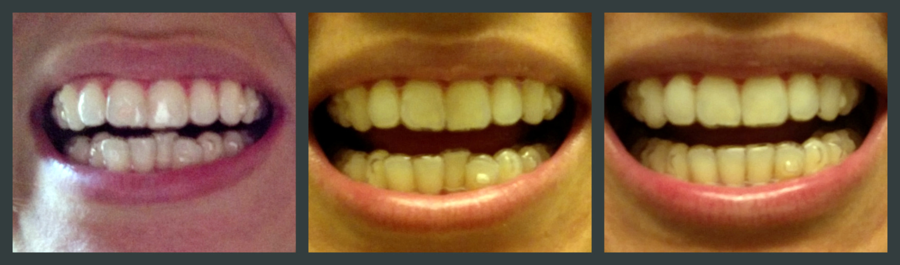 From left to right: Day 1 with Invisalign, halfway through, and my last tray!